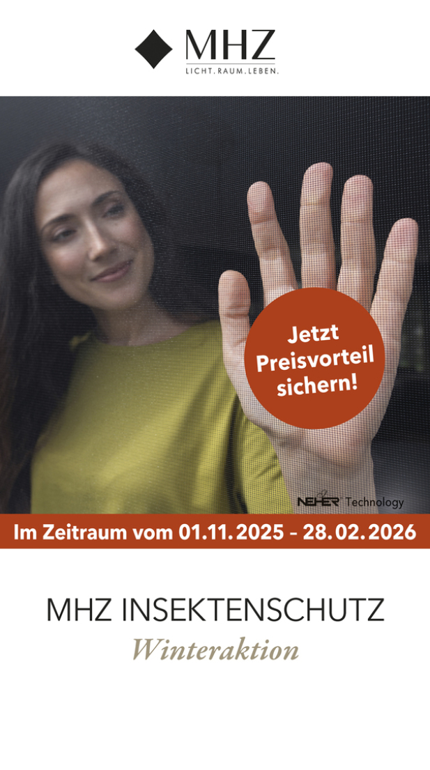 Sichern Sie sich bis zum 28. Februar 2026 Ihren exklusiven Preisvorteil auf alle Insektenschutzprodukte in bewährter MHZ Qualität.